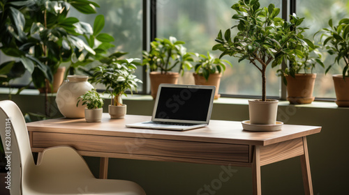 laptop, table, plant, workspace, technology, working, office, productivity, nature, modern, digital, computer, workplace, business, creative