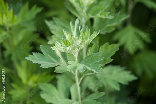 green wormwood (Artemisia absinthium) plant grows in the wild