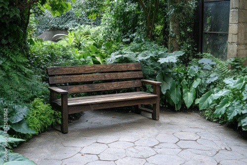 greenery, wooden, garden, bench, surrounded, nature, seating, plant, rustic, peaceful, natural, garden furniture, wood, environmentally friendly, relaxation, green, tranquil, backyard, sustainable, aesthetic, relaxing, environment, foliage, botanical