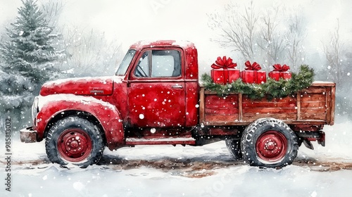 car, truck, pickup, vintage, auto, antique, transport, christmas, winter, holiday, santa, snow, hat, toy, decoration, gift, claus, christmas, happy, cute, december, fun, season, santa, new year, cold, celebration, tree, red