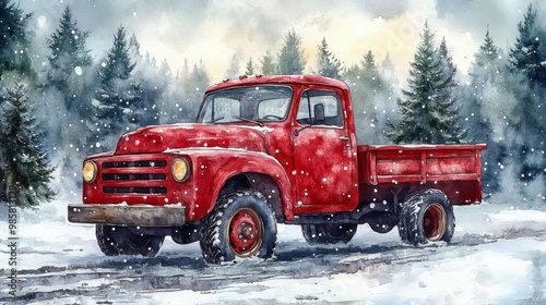 car, truck, pickup, vintage, auto, antique, transport, christmas, winter, holiday, santa, snow, hat, toy, decoration, gift, claus, christmas, happy, cute, december, fun, season, santa, new year, cold, celebration, tree, red