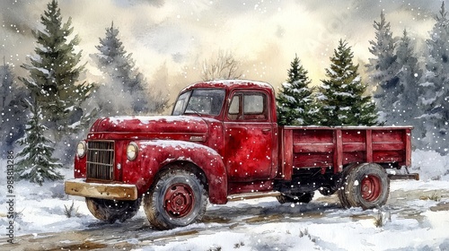 car, truck, pickup, vintage, auto, antique, transport, christmas, winter, holiday, santa, snow, hat, toy, decoration, gift, claus, christmas, happy, cute, december, fun, season, santa, new year, cold, celebration, tree, red
