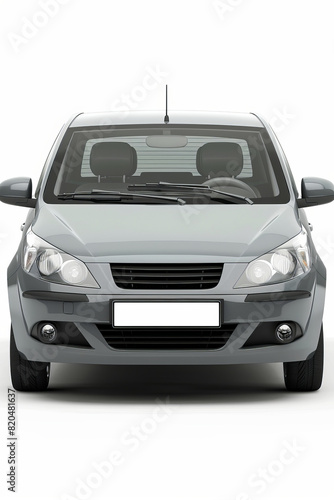 grey compact car, ultra realist, front view, ground view, white background,generative ai