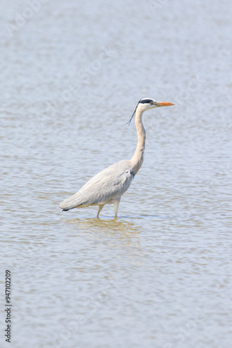 Grey Heron Wading Through the Shallow Water