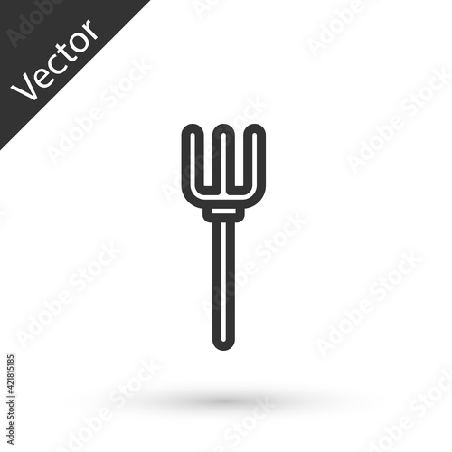 Grey line Garden pitchfork icon isolated on white background. Garden fork sign. Tool for horticulture, agriculture, farming. Vector