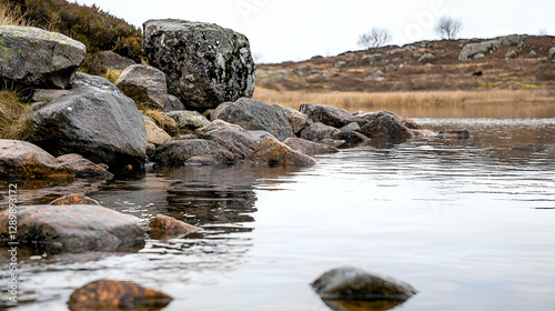 Grey Rocks and Still Water Reflection in a Peaceful Natural Landscape