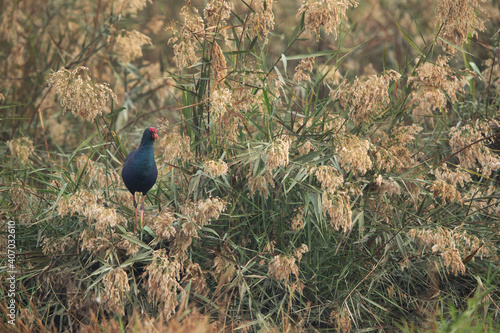 Grey-headed Swamphen in its habitat at Asker Marsh, Bahrain