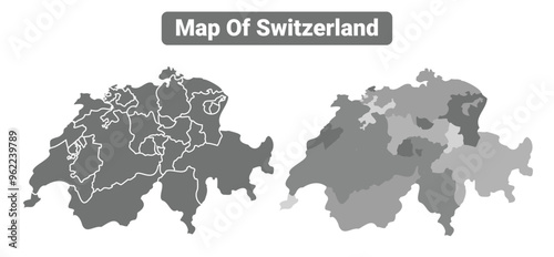Greyscale Switzerland political map with borders outline style vector illustration set