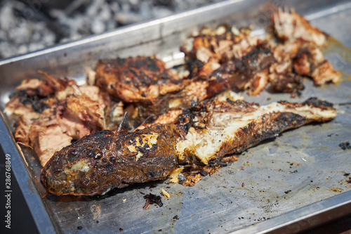 fried, food, fish, seafood, picnic, fresh, cookery, background, baked, dish, roasted, prepared, hot, plate, organic, grilled, epicure, tasty, bar-b-q, sea, nourishment, diet, whole, dinner, coal, lunch, meat, cooking, smoke, healthy, meal, bar-b-q, heat, eat, delicious, eating