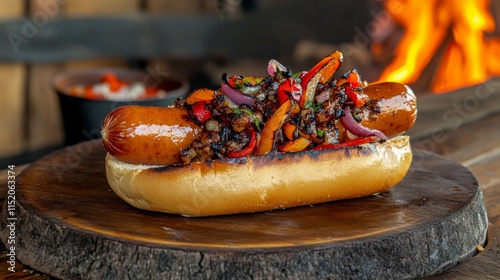 Grilled Hot Dog with Peppers and Onions in Natural Setting