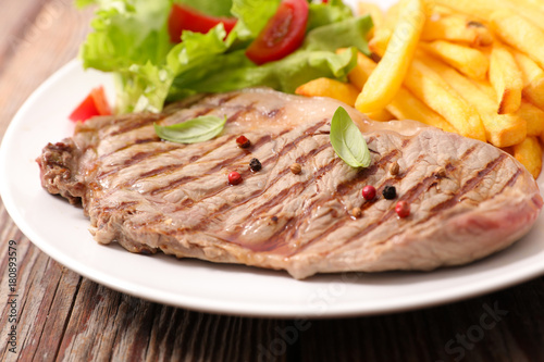 steak, grilled, fried, bar-b-q, beef, fillet, sirloin, french fries, food, eatery, cookery, dinner, lunch, meal, meat