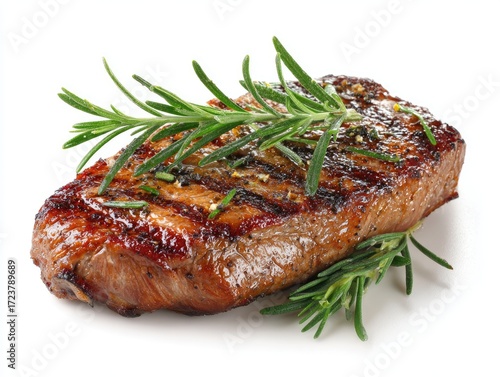 steak, grilled, cooked, meat, food, roast, rosemary, herb, favor, delicious, savoury, juicy, tender, protein, dinner, meal, cookery, appetising, browned, crispy, seasoned, tasty, lunch, nourishment, healthy, lean, red, brown, fresh, ingredient, cooking, food photography, isolated, white background, closeup