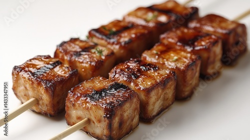 Grilled tofu skewers, glazed and seasoned
