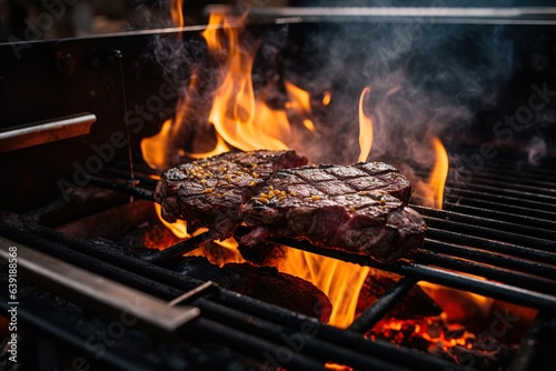 Grilling beef steak on charcoal, Generative AI