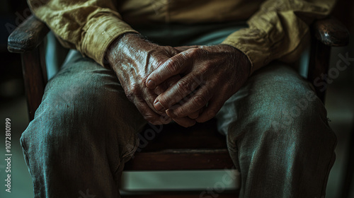 Gripping the Moment: A Man's Hands Reveal the Strain of Inner Conflict