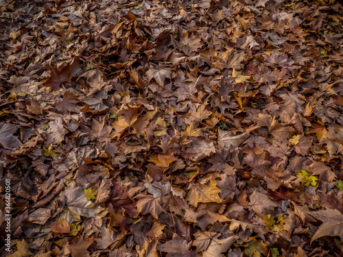 Ground full of fallen brown leaves in autumn