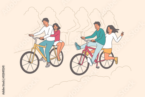bicycle, walk, summer, people, friends, happy, nature, vacation, travel, bicyclist, woman, bike, sport, cycling, leisure, man, positive, activity, friendship, freedom, adventure, trip, drive, hiking, relax, retirement, pleasure, male, weekend, joy, holiday, pedal, guy, smile, girl, ride, park, laugh, female, rest, lady, together, carefree, student, human, vector, illustration, person, isolated, concept