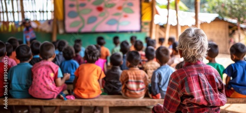 volunteer, help, charity, movement, human, person, people, ai, primary, classroom, village, group, care, ethnic, poor, poverty, crisis, indoor, children, rural, africa, education, african, ethnicity, elementary, girl, black, class, school, lesson, face, young, learn, support, educate, study, sitting, boy, portrait, together, childhood, learning, room, pupil, meeting
