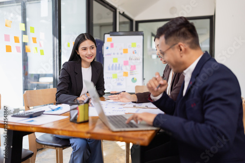 Group of Asian business working plan analysis project brainstorm in modern office, Asian businesspeople team working together, Business startup and company strategy planning concept.