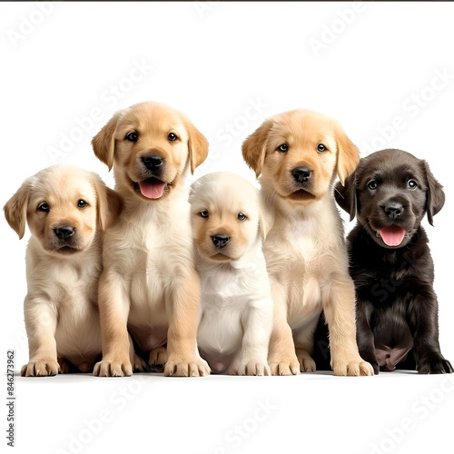 Group of Baby golden Labrador retriever isolated on white background generative AI