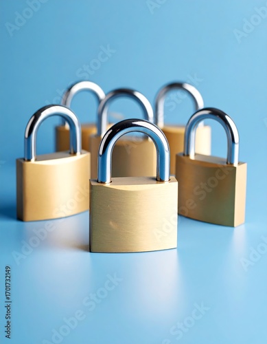 lock, padlock, brass, security, metal, protection, safety, group, flocked, closeup, light blue, surface, object, image, digital, three-dimensional, design, hardware, isolated, closeup, accessory, technology, equipment, industrial, commercial