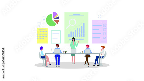 teamwork, meeting, discussion, leadership, vector, illustration, goal, target, web, banner, motivation, social, brainstorm, present, isolated, strategy, planning, management, symbol, set, male, project, character, background, manager, training, professional, presentation, flat, business, cartoon, work, people, corporate, person, success, woman, concept, design, man, communication, businessman, partnership, graph, chart, conference, office, table, group, team