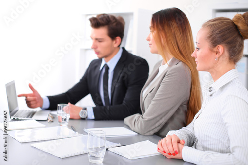 business, meeting, people, person, consulting, team, work, training, group, planning, career, smiling, document, idea, brainstorming, sharing, positive, seminar, woman, white, teamwork, occupation, portrait, tied-up, strategy, contemporary, competitive, interact, female, gathered, paperwork, smart, employee, discussing, paper, briefing, attention, workplace, cheerful, explaining, man, financial, happy, blond