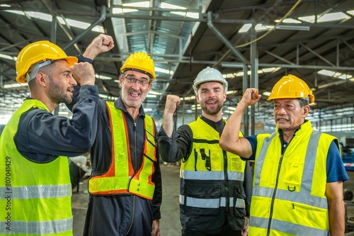 Group of colleague Engineer team join stack hand together with Spirit diversity solidarity power team in factory. foreman Join hand show oneness unity together teamwork friendship empower.