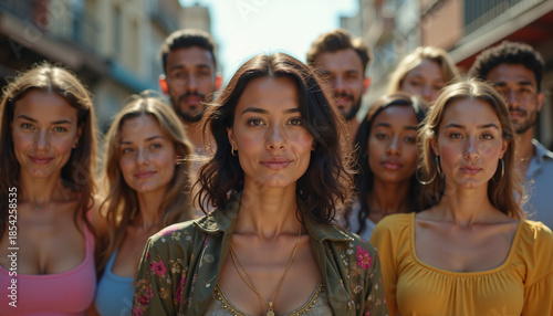 group, people, young, diverse, cheerful, posing, street, sunlight, portrait, community, friendship, smiling, outdoors, summer, vibrant, joyful, fashion, celebration, togetherness, culture, ethnicity, happiness, lifestyle, candid, beauty, natural, social, communication, connection, harmony, gathering, fun, team, inclusive, model, expression, closeup, casual attire, oneness, tour tourism, neighbourhood