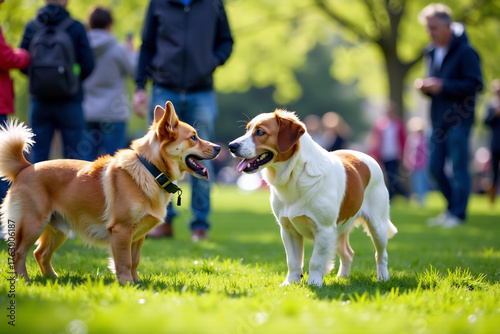 Group of Dogs and Cats at Outdoor Pet Meetup