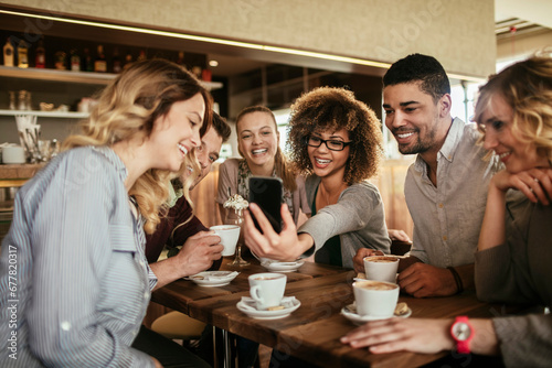 people, group, happy, friends, smartphone, cafes, caucasian, african american, man, woman, selfie, smile, mobile phone, socialising, technology, modern, gathering, leisure, digital, communication, connectivity, enjoyment, indoor, casual attire, urban, interaction, cafes, togetherness, bonding, city life, emotion, activity, wireless, city, casual clothes, youth, adult, diversity, equity, inclusion, lifestyle