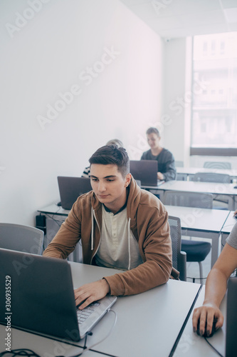 caucasian, boy, casual attire, class, classmate, classroom, college, computer, course, desk, education, exam, friends, girl, group, happy, high, high school, indoor, cyberspace, keyboard, cognition, laptop, learn, learning, lecture, lesson, lifestyle, modern, mouse, online, people, person, reading, school, secondary, sitting, smiling, student, study, studying, technology, teenage, teenage, together, typing, university, using, vertical, white