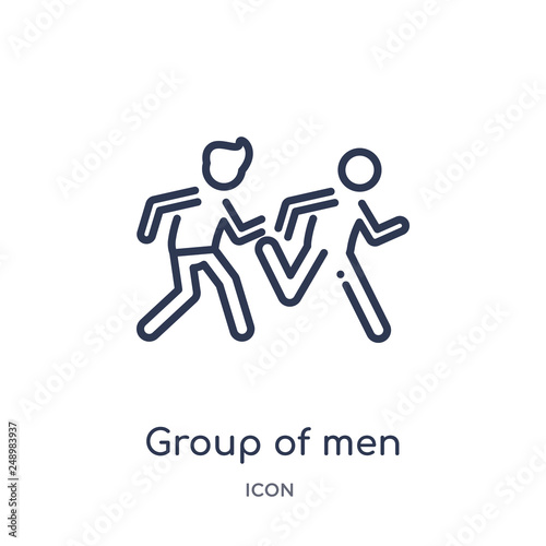 group of men running icon from people outline collection. Thin line group of men running icon isolated on white background.