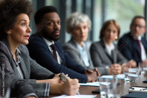 group, people, sitting, table, business, setting, woman, front, looking, businesswoman, meeting, businessman, camera, man, office, teamwork, adult, corporate, colleague, team, female, conference, professional, male, young, together, discussion, manager, caucasian, co-worker