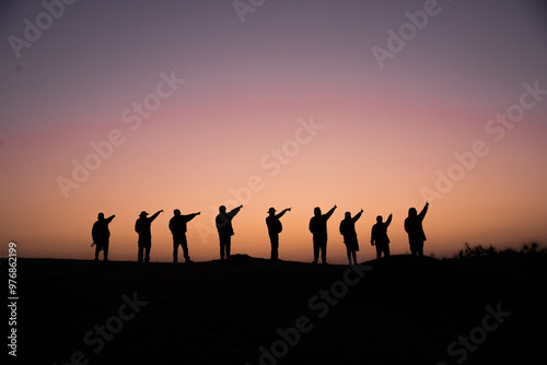 group of people at sunset