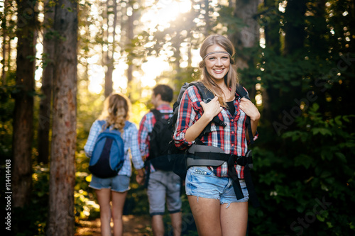 Group of people hiking in forest