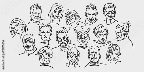 crowd, graphic, line, portrait, people, avatar, association, society, together, friendship, earth, different, black, businessman, cartoon, collection, company, variety, face, formal, group, happy, illustration, man, many, person, photograph, profile, set, silhouette, beard, smart, solidarity, staff, style, user, vector, web, woman, work, young, youth