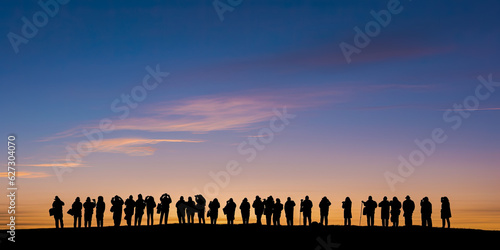 nature, sunset, man, working, outdoors, businessman, many-coloured, shadow, blue, landscape, silhouette, family, religion, crowd, walking, travel, adult, woman, businesswoman, summer, business, sun, dusk, backlit, success, standing, teamwork, idea, sunlight, variation, crowd, businessperson, spirituality, togetherness, sunrise, dawn, community, outline, social gathering, cooperation, copy space, generative, ai