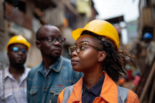 group, people, team, men at work, safety-gear, african american, construction site, project, work, industry, job, african, task, outdoors, teamwork, collaboration, helmet, construction industry, labourer, workplace, protective clothing, engineering, infrastructure, site, labor, hard-working, man, woman, professional, urban development, black