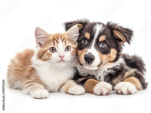 cat, dog, pet, kitten, white, isolated, animal, puppy, cute, dog, young, portrait, felino, domestic, funny, group, chihuahua, sitting, animal, together, purebred, pet, studio, friendship, 2