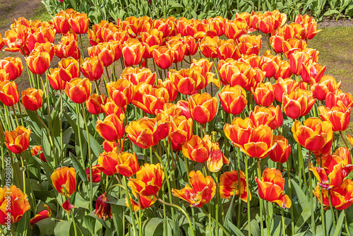 orange, red, rose, tulip, tulip, liliaceae, bulb, cultivation, sun, famous, place, tour tourism, attraction, travel, destination, outdoors, exterior, landmark, scenic, photogenic, picturesque, nature, park, garden, lush, vegetation, flower, spring, blooming, cultivated, plant, leaf, fragrance, scent, lisse, holland, europa, landscape, horizontal, no people