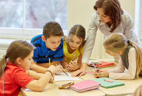 education, school, elementary, student, teacher, looking, helping, smiling, group, happy, children, children, cognition, classmate, lesson, class, classroom, little, beautiful, indoor, people, person, concept, learning, studying, boy, girl, woman, preteen, desk, young, schoolgirl, pupil, childhood, together, many, primary, grade, junior, sitting, teamwork, team