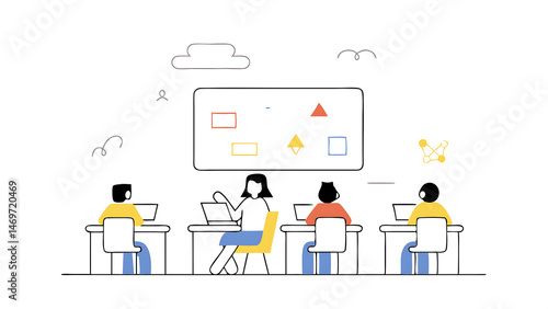 group, tech, savvy, primary, school, children, working, laptop, tablet, computer, class, young, female, teacher, educating, children, cyberspace, safety, basic, programming, language, formula, lesson, education, digital, literacy, technology, learning, skill, cognition, code, science, online, web, site, datum, information, program, room, student, girl, boy, future, career, innovation, expert