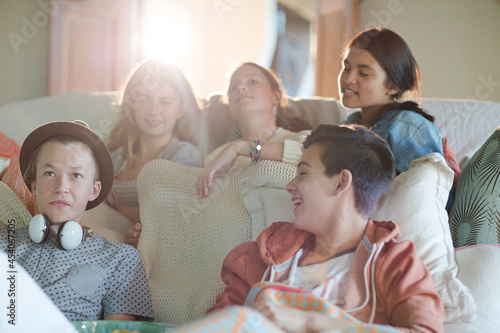 group, teenage, fun, watch, television, sofa, backlit, box, boy, cape town, casual attire, clothes, control, culture, day, domestic, 5, friendship, girl, happy, indoor, lean, leisure, lifestyle, living room, people, pizza, playful, remote, to sit, south africa, togetherness, youth