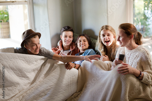 Group of teenagers sitting on sofa