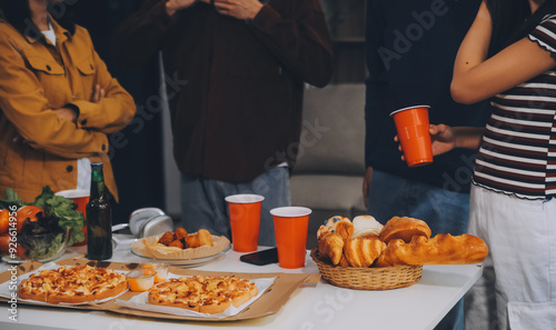 Group of young friends eating pizza.Home party.