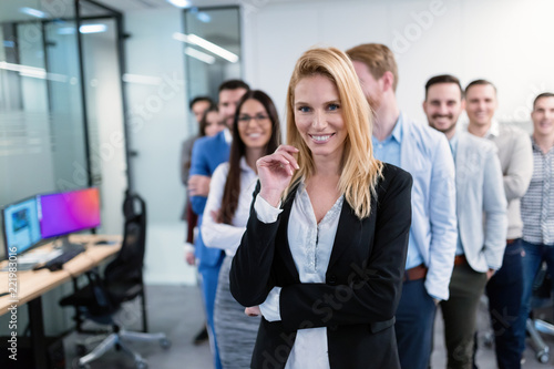 Group picture of business team posing in office