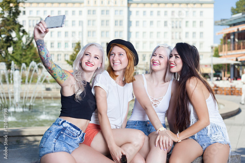 selfie, group, woman, girl, summer, city, friends, happy, fun, lifestyle, urban, friendship, beautiful, young