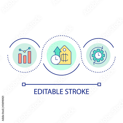 Growing rate of cryptocurrency loop concept icon. Long term investment. Digital currency advantages abstract idea thin line illustration. Isolated outline drawing. Editable stroke. Arial font used