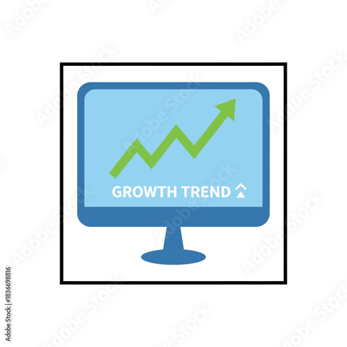 Growth trend on monitor displaying upward sales ideal for business presentations illustrating financial success in a digital market analysis report.